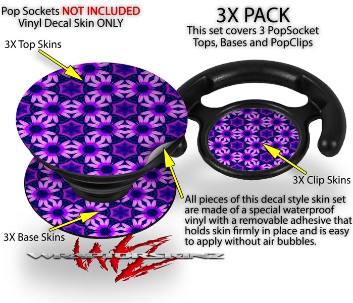 Decal Style Vinyl Skin Wrap 3 Pack for PopSockets Daisies Purple (POPSOCKET NOT INCLUDED)