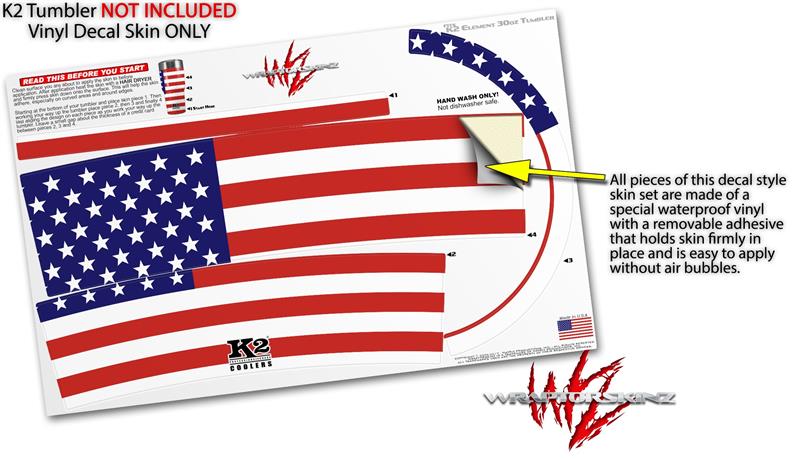 Skin Decal Wrap for K2 Element Tumbler 30oz - USA American Flag 01 (TUMBLER NOT INCLUDED) by WraptorSkinz