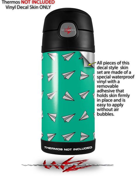 Skin Decal Wrap for Thermos Funtainer 12oz Bottle Paper Planes Turquoise (BOTTLE NOT INCLUDED) by WraptorSkinz