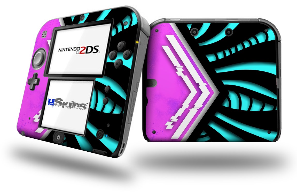 Black Waves Neon Teal Hot Pink - Decal Style Vinyl Skin fits Nintendo 2DS - 2DS NOT INCLUDED