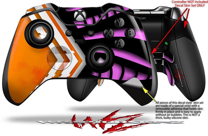 Black Waves Orange Hot Pink - Decal Style Skin fits Microsoft XBOX One ELITE Wireless Controller