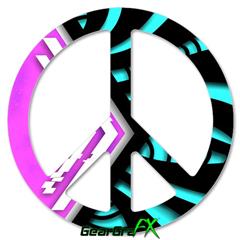 Black Waves Neon Teal Hot Pink - Peace Sign Car Window Decal 6 x 6 inches