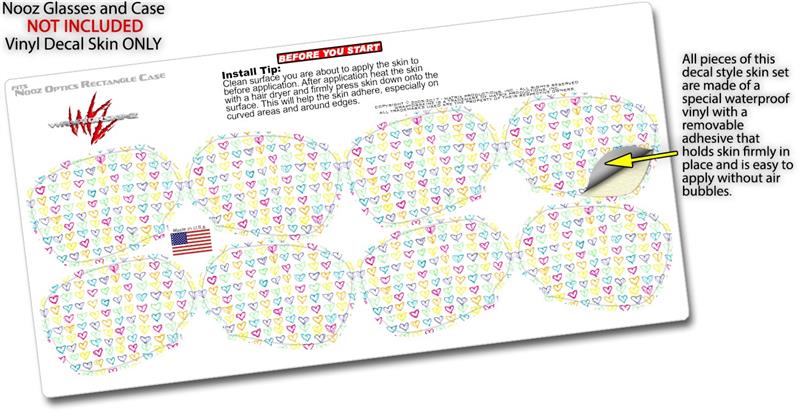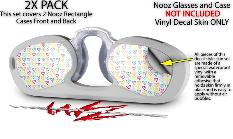 Decal Style Vinyl Skin Wrap 2 Pack for Nooz Glasses Rectangle Case Kearas Hearts White (NOOZ NOT INCLUDED) by WraptorSkinz