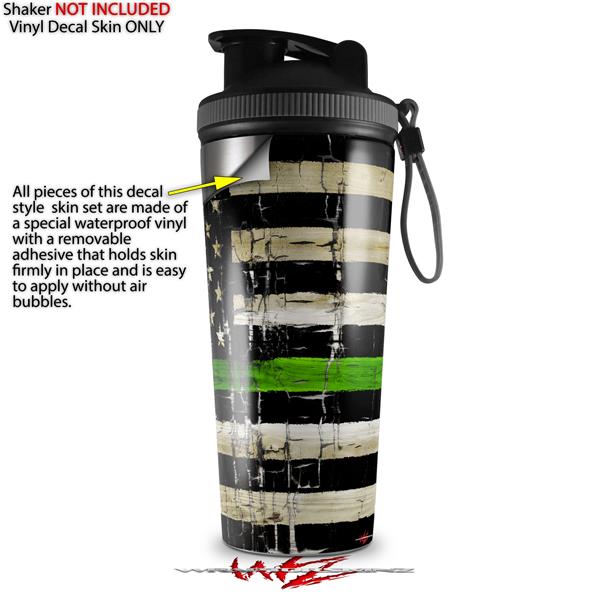 Skin Wrap Decal for IceShaker 2nd Gen 26oz Painted Faded and Cracked Green Line USA American Flag (SHAKER NOT INCLUDED)