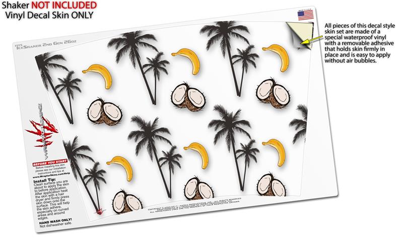 Skin Wrap Decal for IceShaker 2nd Gen 26oz Coconuts Palm Trees and Bananas White (SHAKER NOT INCLUDED)
