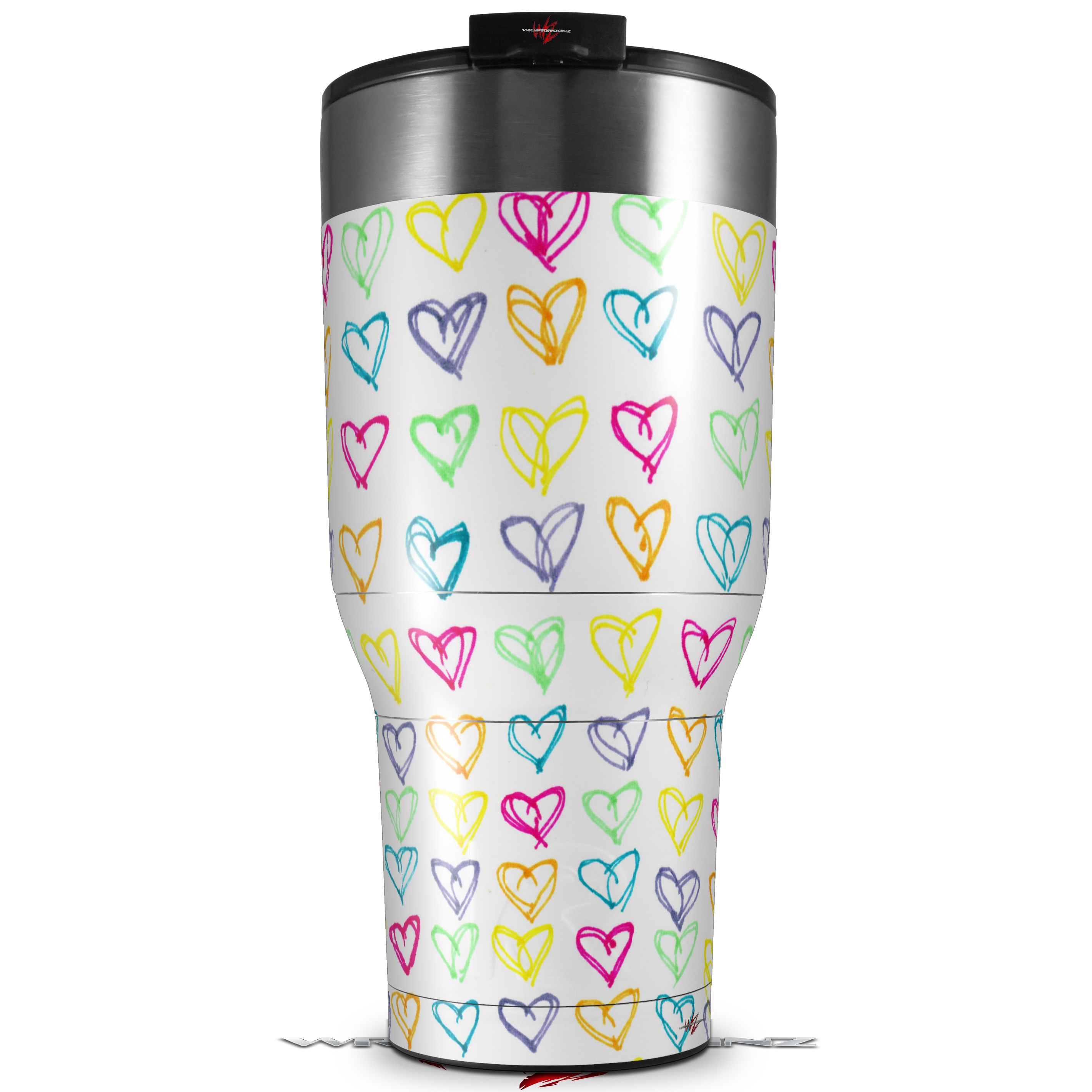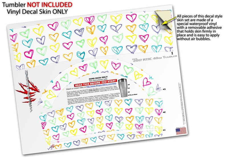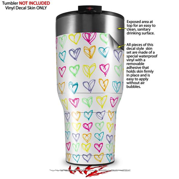 Skin Wrap Decal for 2017 RTIC Tumblers 40oz Kearas Hearts White (TUMBLER NOT INCLUDED)