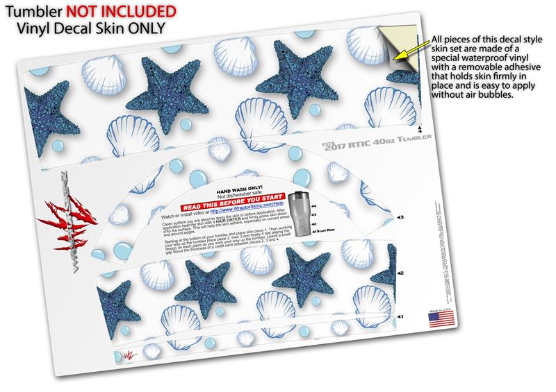 Skin Wrap Decal for 2017 RTIC Tumblers 40oz Starfish and Sea Shells White (TUMBLER NOT INCLUDED)