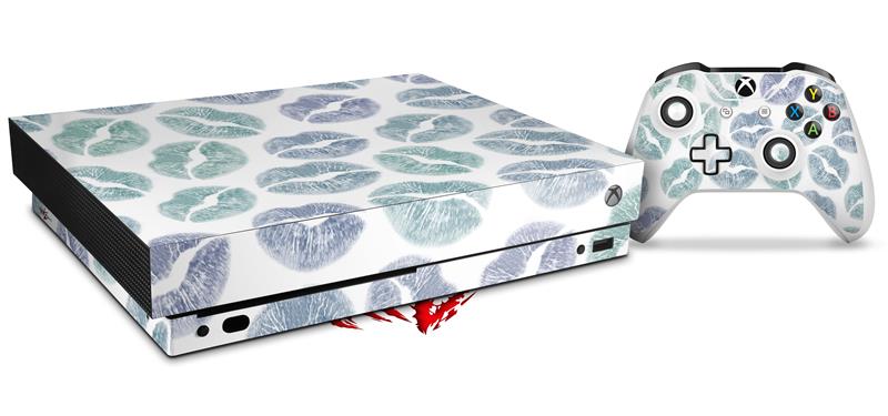 Skin Wrap for XBOX One X Console and Controller Blue Green Lips