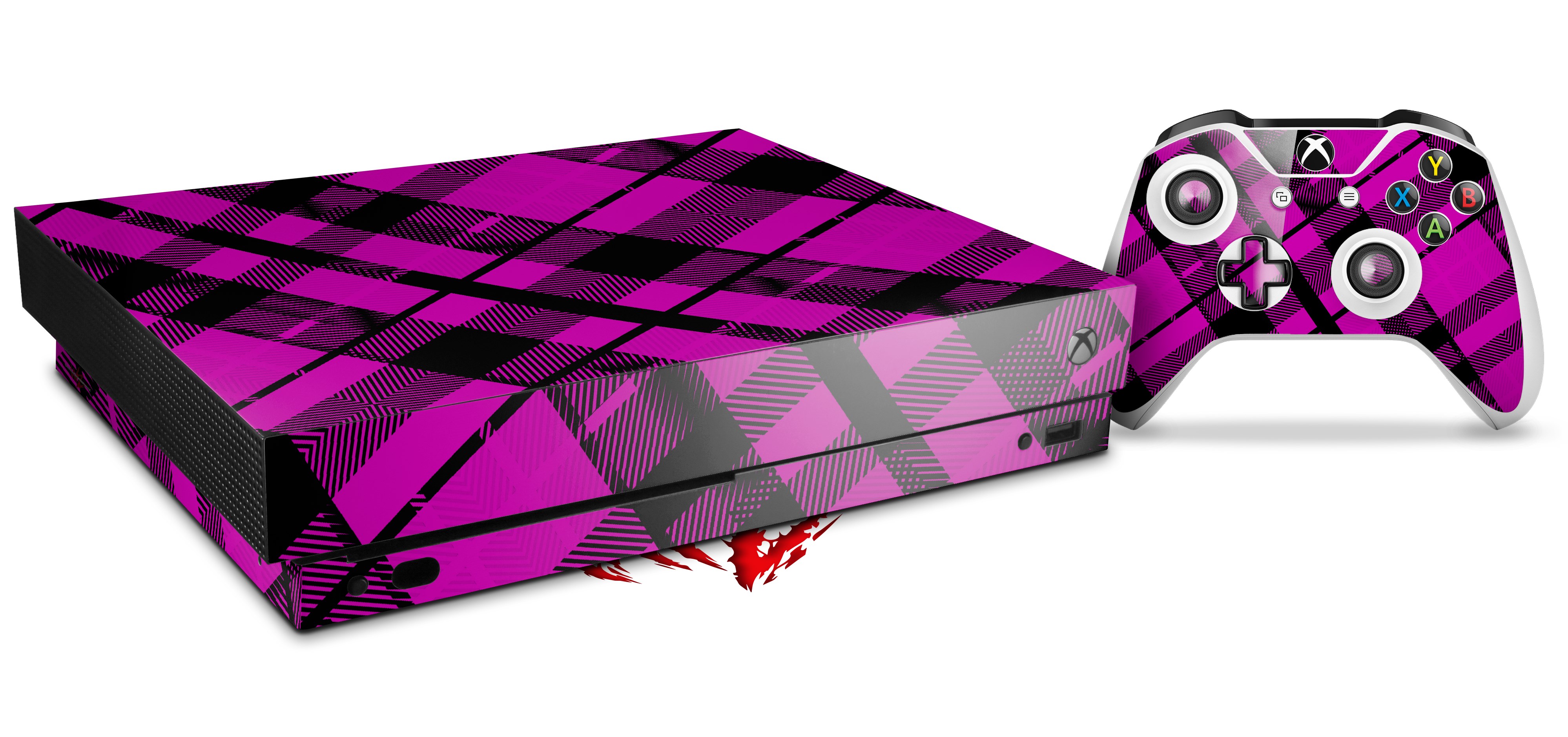 Skin Wrap for XBOX One X Console and Controller Pink Plaid