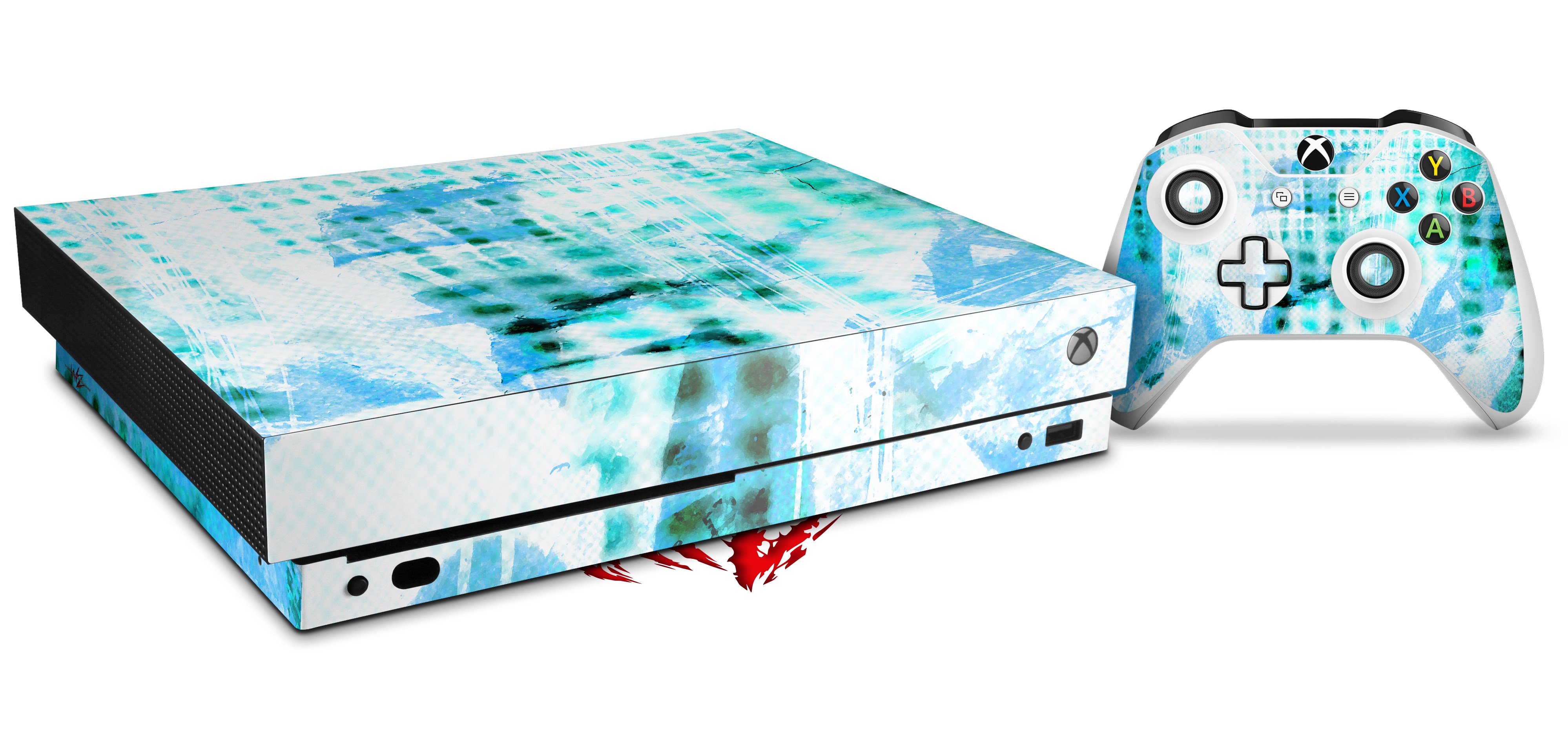 Skin Wrap for XBOX One X Console and Controller Electro Graffiti Blue