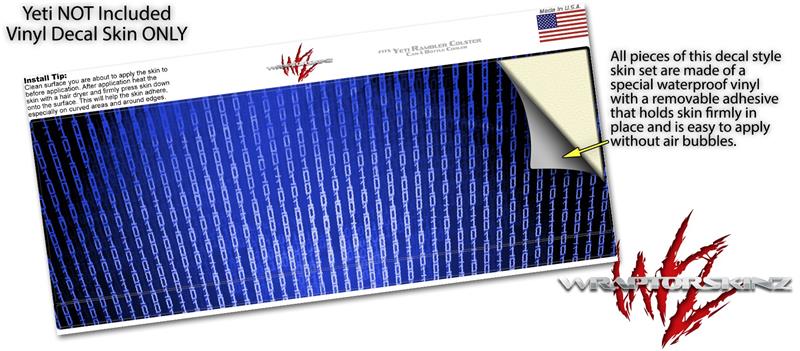 Skin Decal Wrap for Yeti Colster, Ozark Trail and RTIC Can Coolers - Binary Rain Blue (COOLER NOT INCLUDED)