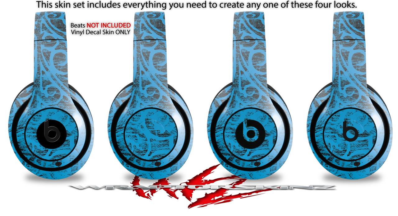 WraptorSkinz Skin Decal Wrap compatible with Beats Studio 2 and 3 Wired and Wireless Headphones Folder Doodles Blue Medium Skin Only (HEADPHONES NOT INCLUDED)
