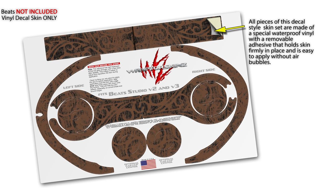 WraptorSkinz Skin Decal Wrap compatible with Beats Studio 2 and 3 Wired and Wireless Headphones Folder Doodles Chocolate Brown Skin Only (HEADPHONES NOT INCLUDED)