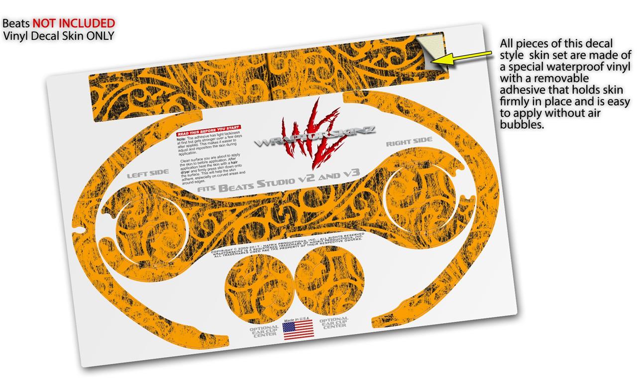 WraptorSkinz Skin Decal Wrap compatible with Beats Studio 2 and 3 Wired and Wireless Headphones Folder Doodles Orange Skin Only (HEADPHONES NOT INCLUDED)