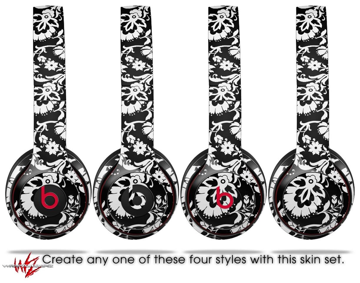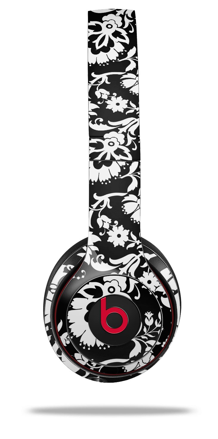 WraptorSkinz Skin Decal Wrap compatible with Beats Solo 2 and Solo 3 Wireless Headphones Black and White Flower (HEADPHONES NOT INCLUDED)