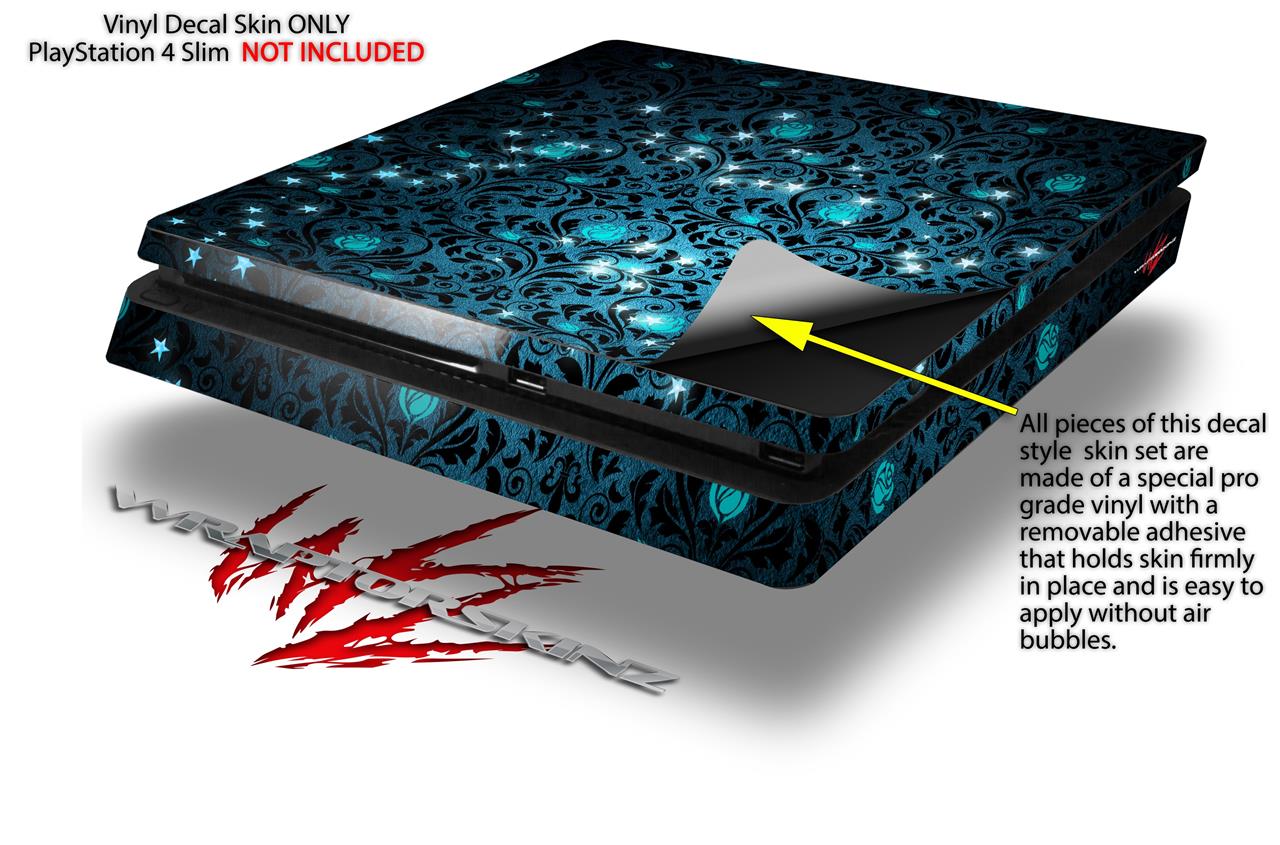 Vinyl Decal Skin Wrap compatible with Sony PlayStation 4 Slim Console Blue Flower Bomb Starry Night (PS4 NOT INCLUDED)