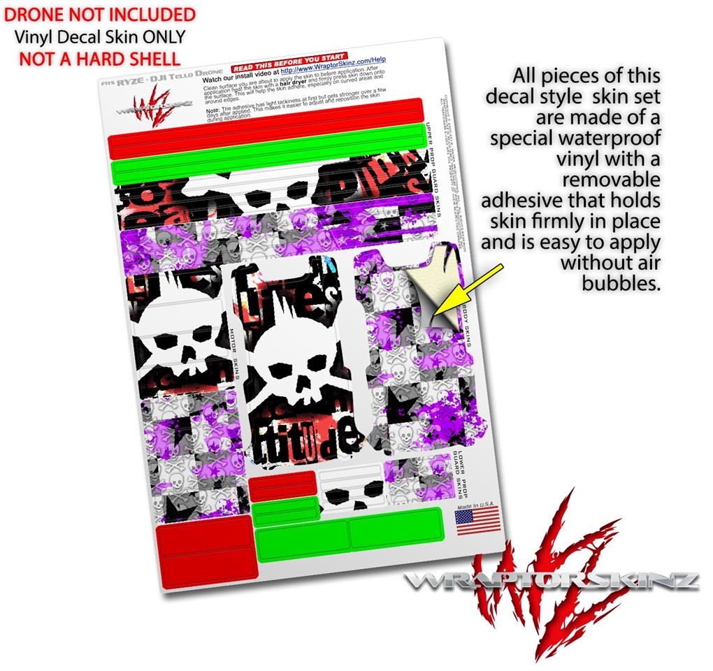 Skin Decal Wrap 2 Pack for DJI Ryze Tello Drone Punk Rock Skull DRONE NOT INCLUDED