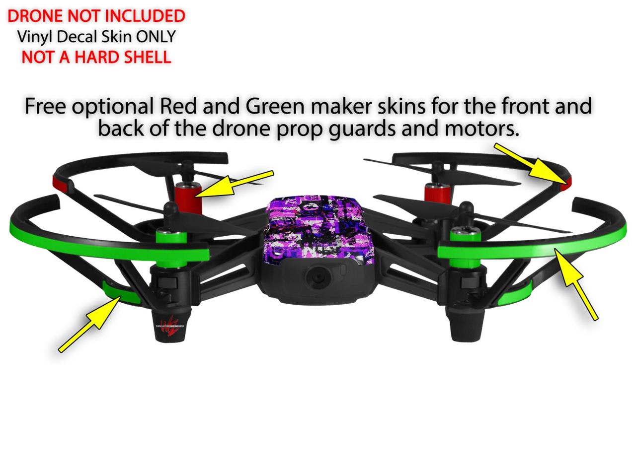 Skin Decal Wrap 2 Pack for DJI Ryze Tello Drone Purple Graffiti DRONE NOT INCLUDED