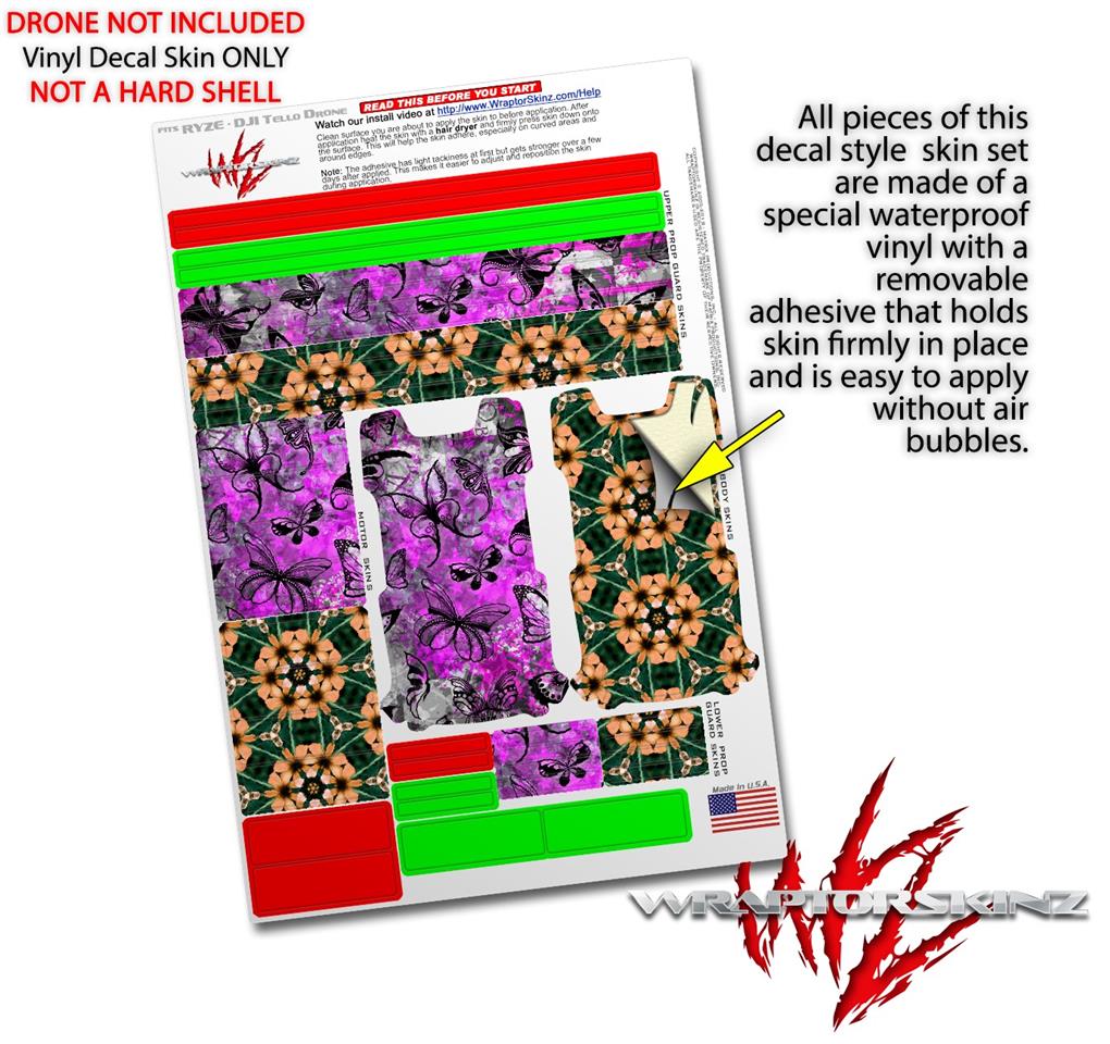 Skin Decal Wrap 2 Pack for DJI Ryze Tello Drone Butterfly Graffiti DRONE NOT INCLUDED