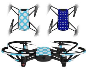 Skin Decal Wrap 2 Pack for DJI Ryze Tello Drone Kearas Polka Dots White And Blue DRONE NOT INCLUDED