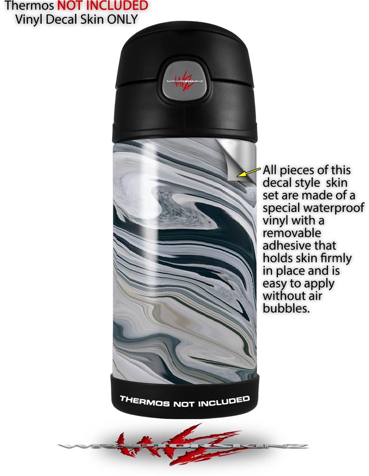 Skin Decal Wrap for Thermos Funtainer 12oz Bottle Blue Black Marble (BOTTLE NOT INCLUDED)