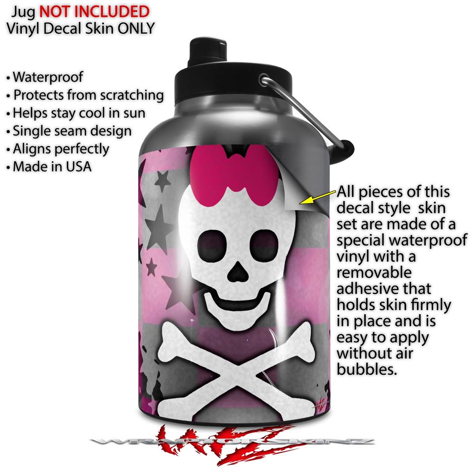 Skin Decal Wrap for 2017 RTIC One Gallon Jug Princess Skull Heart Pink (Jug NOT INCLUDED) by WraptorSkinz
