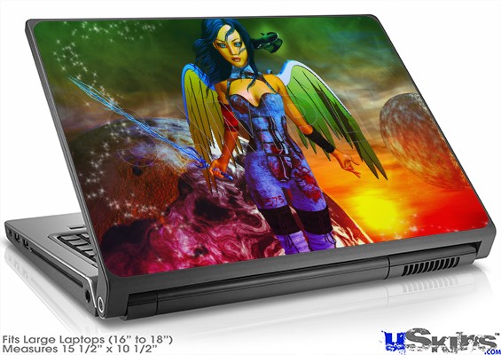Laptop Skin fits most larger size laptops with 16" to 18" screens. Skin measures 15 1/2" wide x 10 1/2" high. uSkinsTM self adhering vinyl skins will look amazing on your electronic gear, printed at the highest resolution possible for unbeatable color and razor sharp clarity. Unlike bulky silicon, plastic or metal cases and faceplates, uSkins are designed to be thin and very tough. uSkins are a composite of layered commercial grade vinyls. The bottom layer is a soft, flexible vinyl with a special removable adhesive that is easily positioned, applied without air bubbles, and effortlessly removed without leaving a sticky residue. uSkins are printed with the latest in UV protected inks that resist fading for up to 3 years even in direct sunlight. Finally we bond a professional grade laminate over the entire skin adding a professional glossy protective finish.