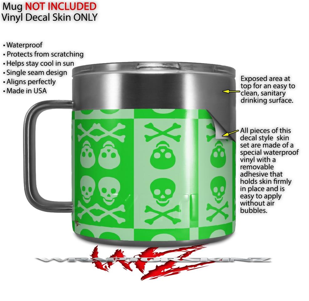 Skin Decal Wrap for Yeti Coffee Mug 14oz Skull And Crossbones Pattern Green - 14 oz CUP NOT INCLUDED by WraptorSkinz
