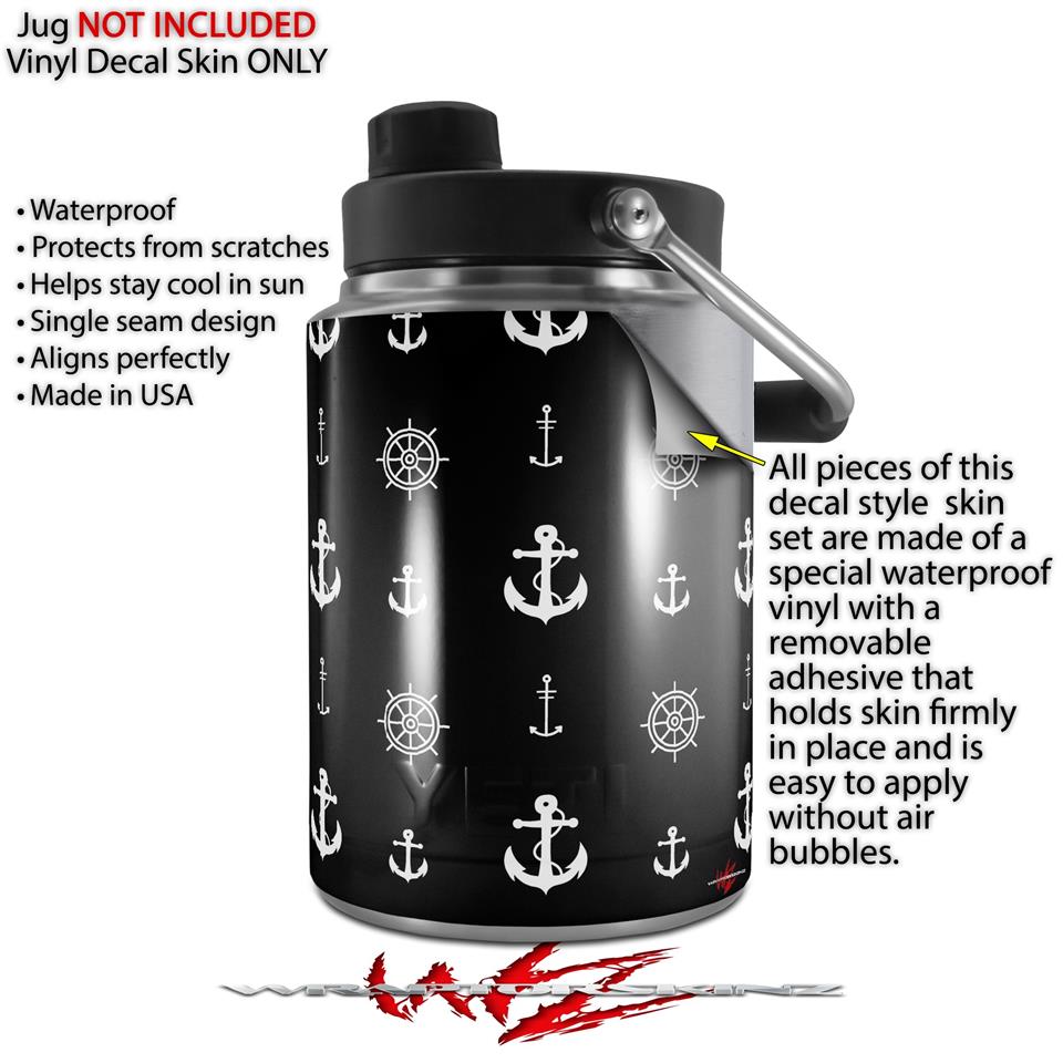 Skin Decal Wrap for Yeti Half Gallon Jug Nautical Anchors Away 02 Black - JUG NOT INCLUDED by WraptorSkinz
