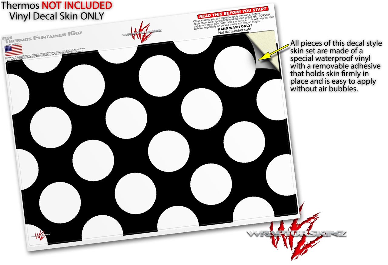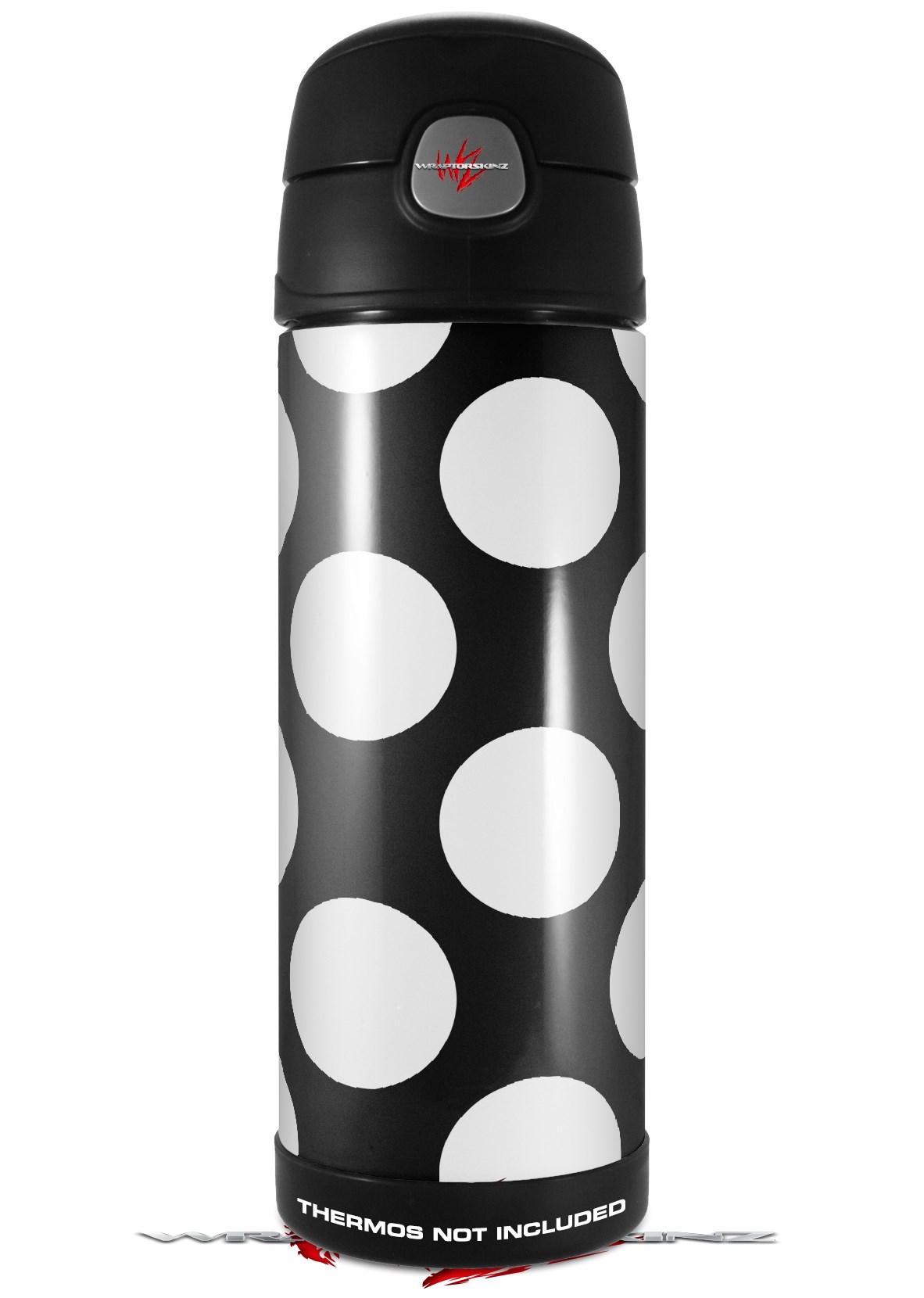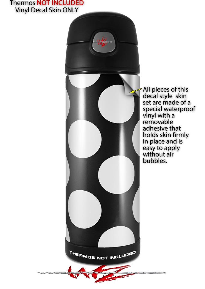 Skin Decal Wrap for Thermos Funtainer 16oz Bottle Kearas Polka Dots White On Black (BOTTLE NOT INCLUDED) by WraptorSkinz