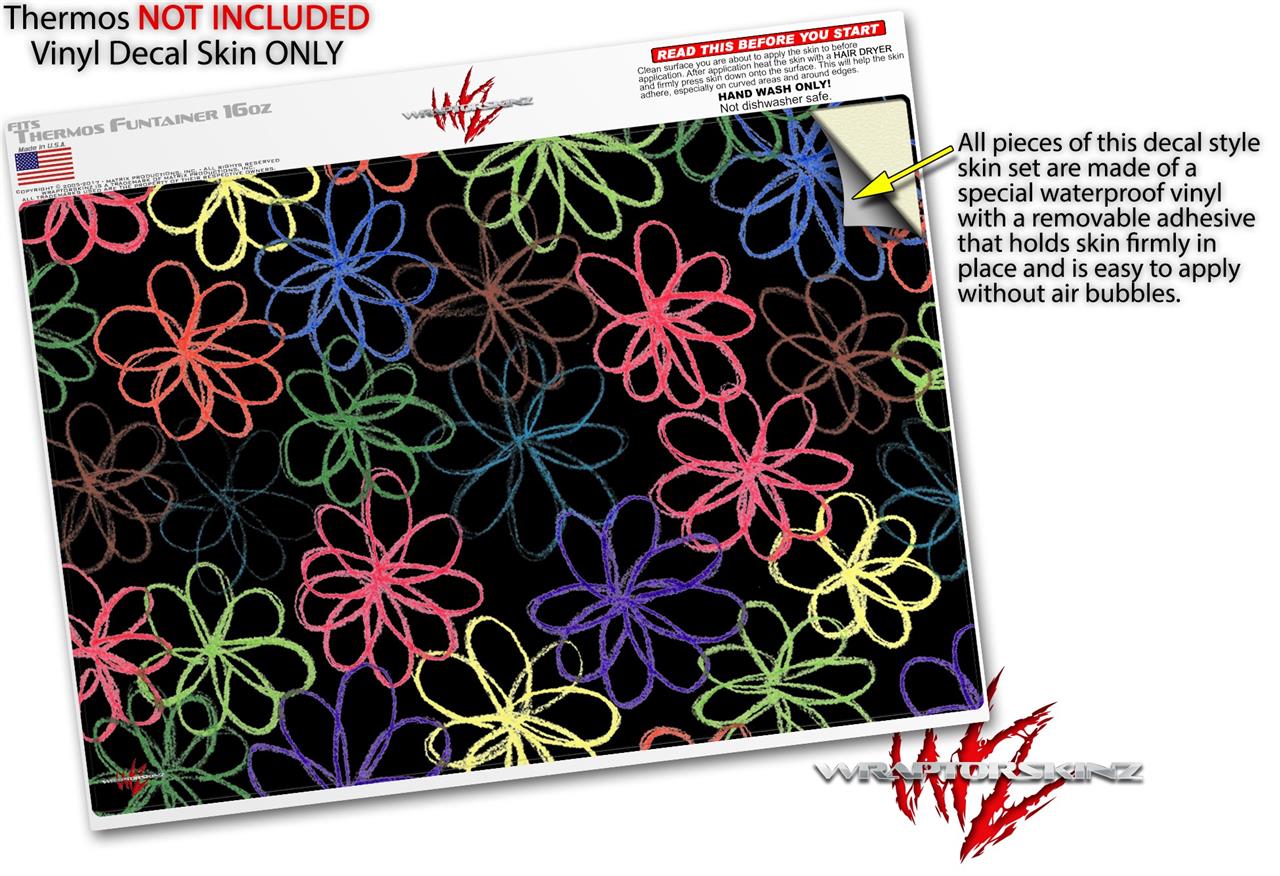 Skin Decal Wrap for Thermos Funtainer 16oz Bottle Kearas Flowers on Black (BOTTLE NOT INCLUDED) by WraptorSkinz