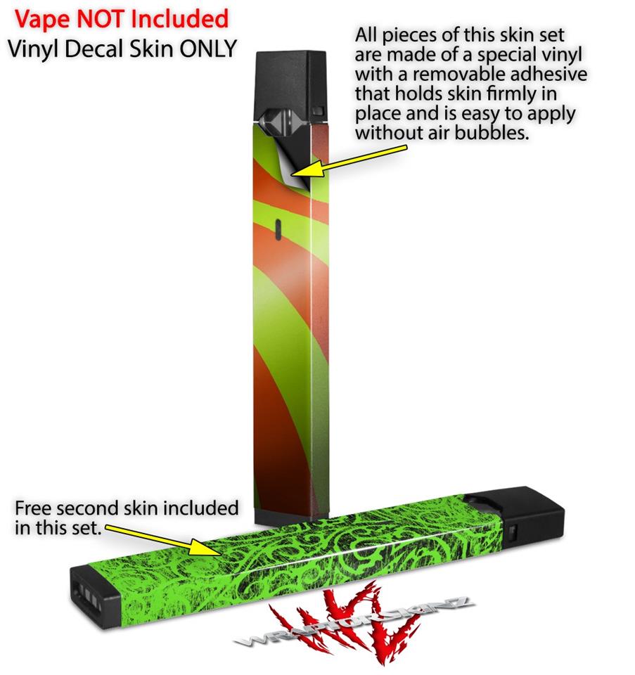 Skin Decal Wrap 2 Pack for Juul Vapes Two Tone Waves Neon Green Orange JUUL NOT INCLUDED