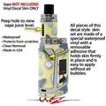 WraptorSkinz® skin wraps are printed using superb photo quality designs and vibrant colors printed with special fade resistant inks that last even in direct sun for years. WraptorSkinz are a composite of two layers of commercial grade materials. The bottom layer is a soft, flexible vinyl with a special removable adhesive that is easily positioned, applied without air bubbles. Next we print the bottom layer with UV protected, fade resistant inks that deliver superb photo quality designs in vibrant colors. Finally we bond a professional grade laminate over the entire skin adding a glossy protective finish. This product is not affiliated with or endorsed by the Smok brand.
