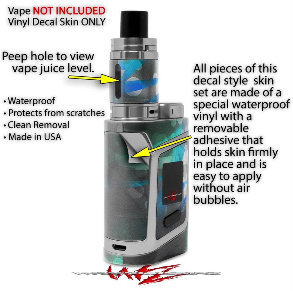 WraptorSkinz® skin wraps are printed using superb photo quality designs and vibrant colors printed with special fade resistant inks that last even in direct sun for years. WraptorSkinz are a composite of two layers of commercial grade materials. The bottom layer is a soft, flexible vinyl with a special removable adhesive that is easily positioned, applied without air bubbles. Next we print the bottom layer with UV protected, fade resistant inks that deliver superb photo quality designs in vibrant colors. Finally we bond a professional grade laminate over the entire skin adding a glossy protective finish. This product is not affiliated with or endorsed by the Smok brand.