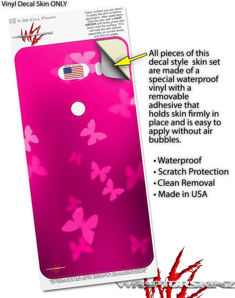 Skin Decal Wrap for LG V30 Bokeh Butterflies Hot Pink
