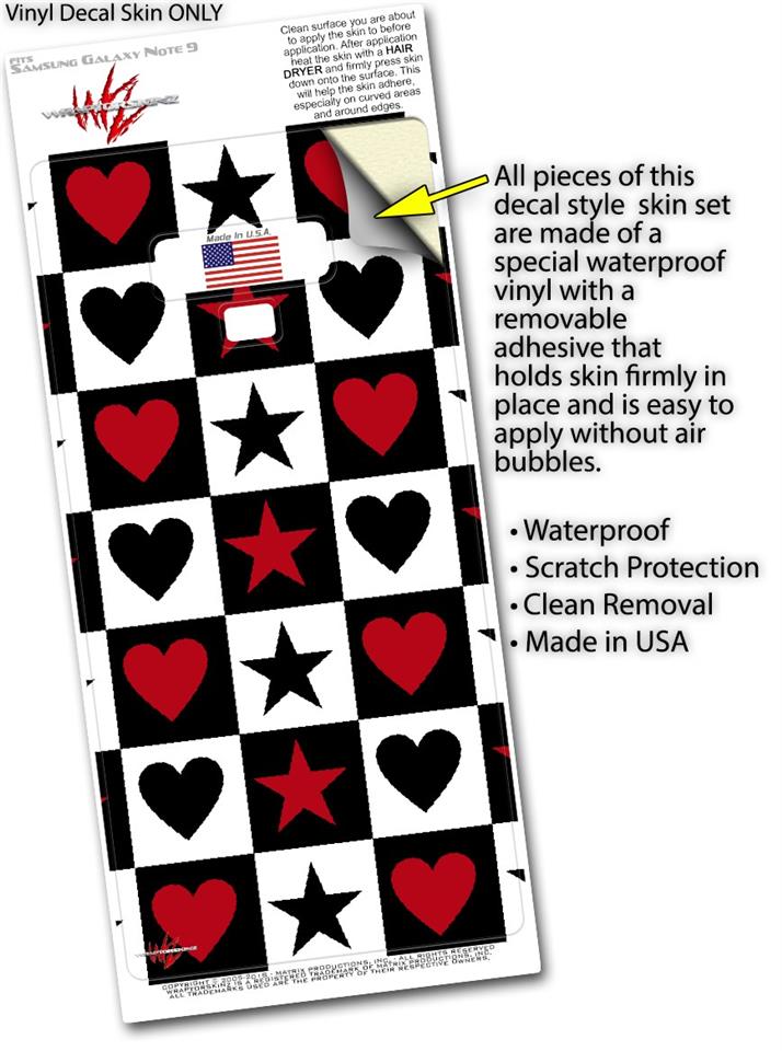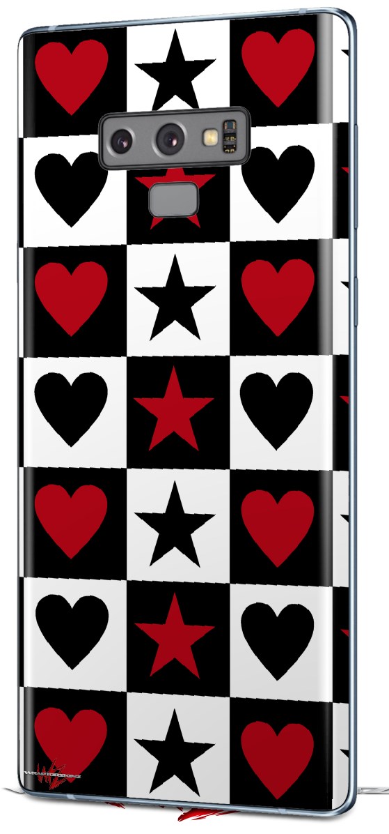 Decal style Skin Wrap compatible with Samsung Galaxy Note 9 Hearts and Stars Red