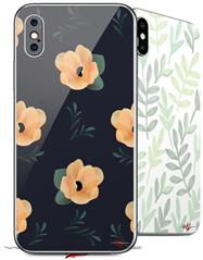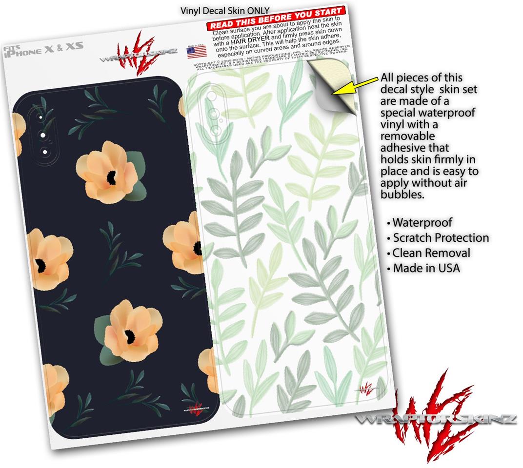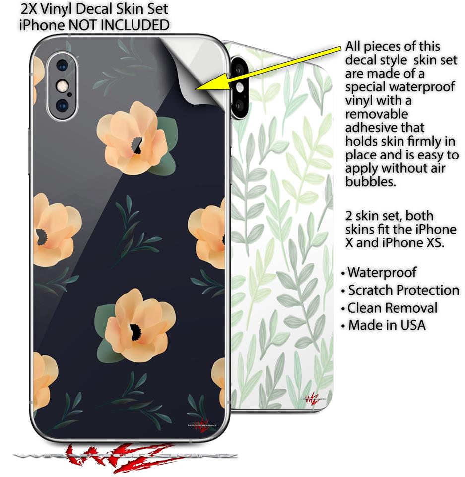 2 Decal style Skin Wraps set for Apple iPhone X and XS Poppy Orange Navy