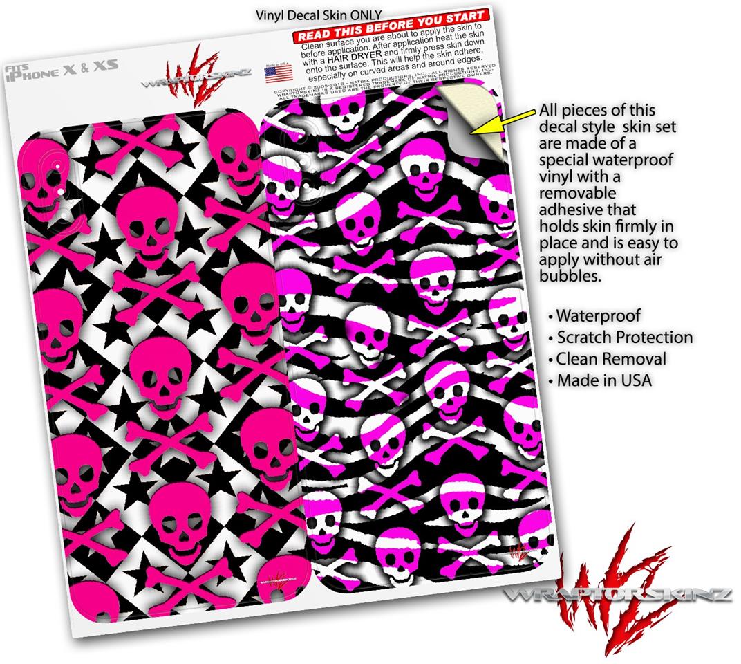 2 Decal style Skin Wraps set for Apple iPhone X and XS Pink Skulls and Stars