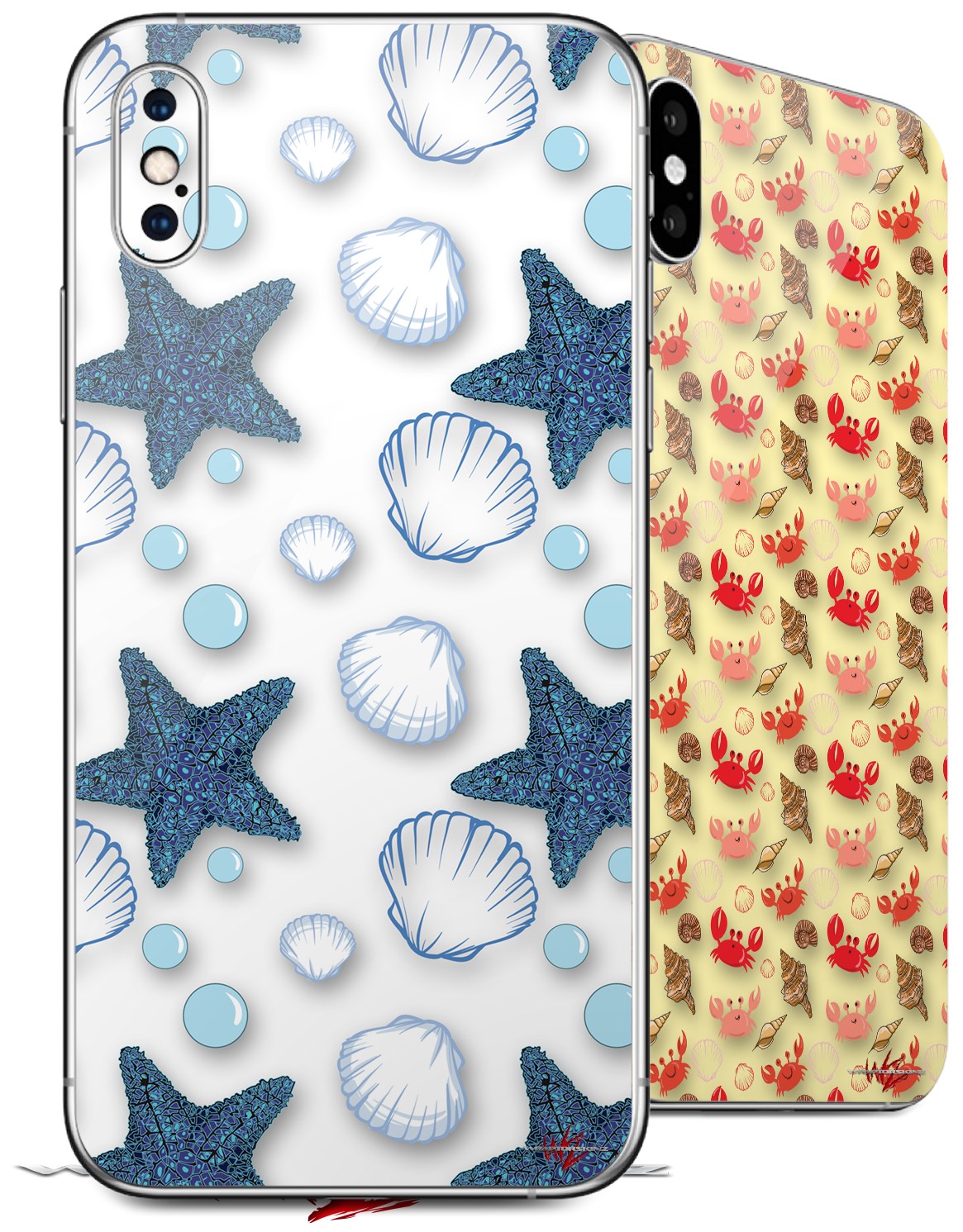2 Decal style Skin Wraps set for Apple iPhone X and XS Starfish and Sea Shells White