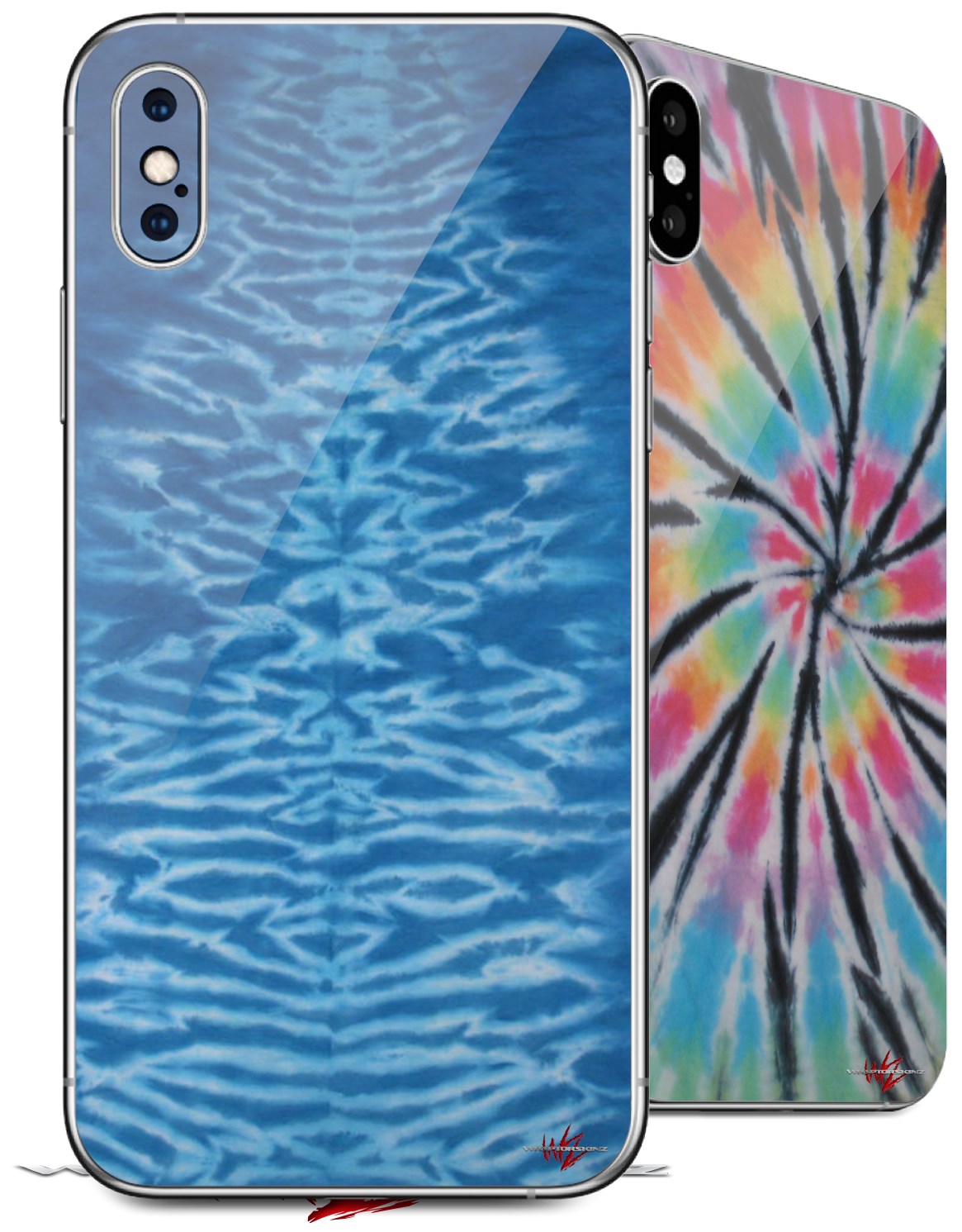 2 Decal style Skin Wraps set for Apple iPhone X and XS Tie Dye Spine 103