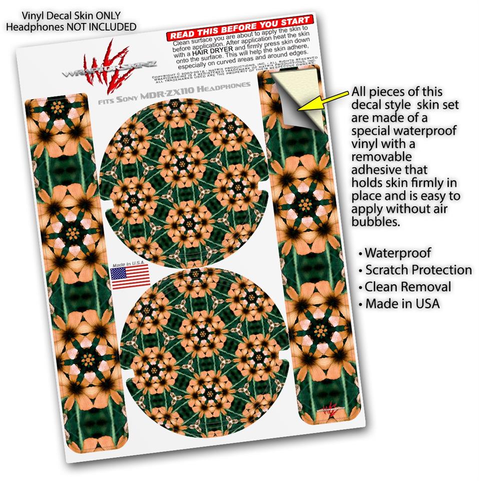 Decal style Skin Wrap for Sony MDR ZX110 Headphones Floral Pattern Orange (HEADPHONES NOT INCLUDED)