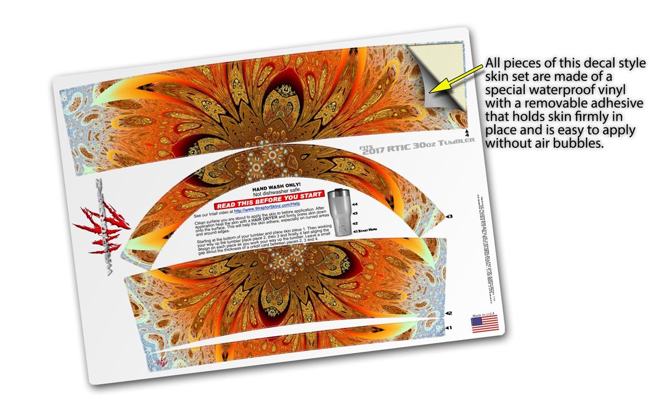 WraptorSkinz® skin wraps for 2017 RTIC Tumblers are printed using superb photo quality designs and vibrant colors printed with special fade resistant inks that last even in direct sun for years. WraptorSkinz® are a composite of two layers of commercial grade materials. The bottom layer is a soft, flexible vinyl with a special removable adhesive that is easily positioned, applied without air bubbles. Next we print the bottom layer with UV protected, fade resistant inks that deliver superb photo quality designs in vibrant colors. Finally we bond a professional grade laminate over the entire skin adding a glossy protective finish.