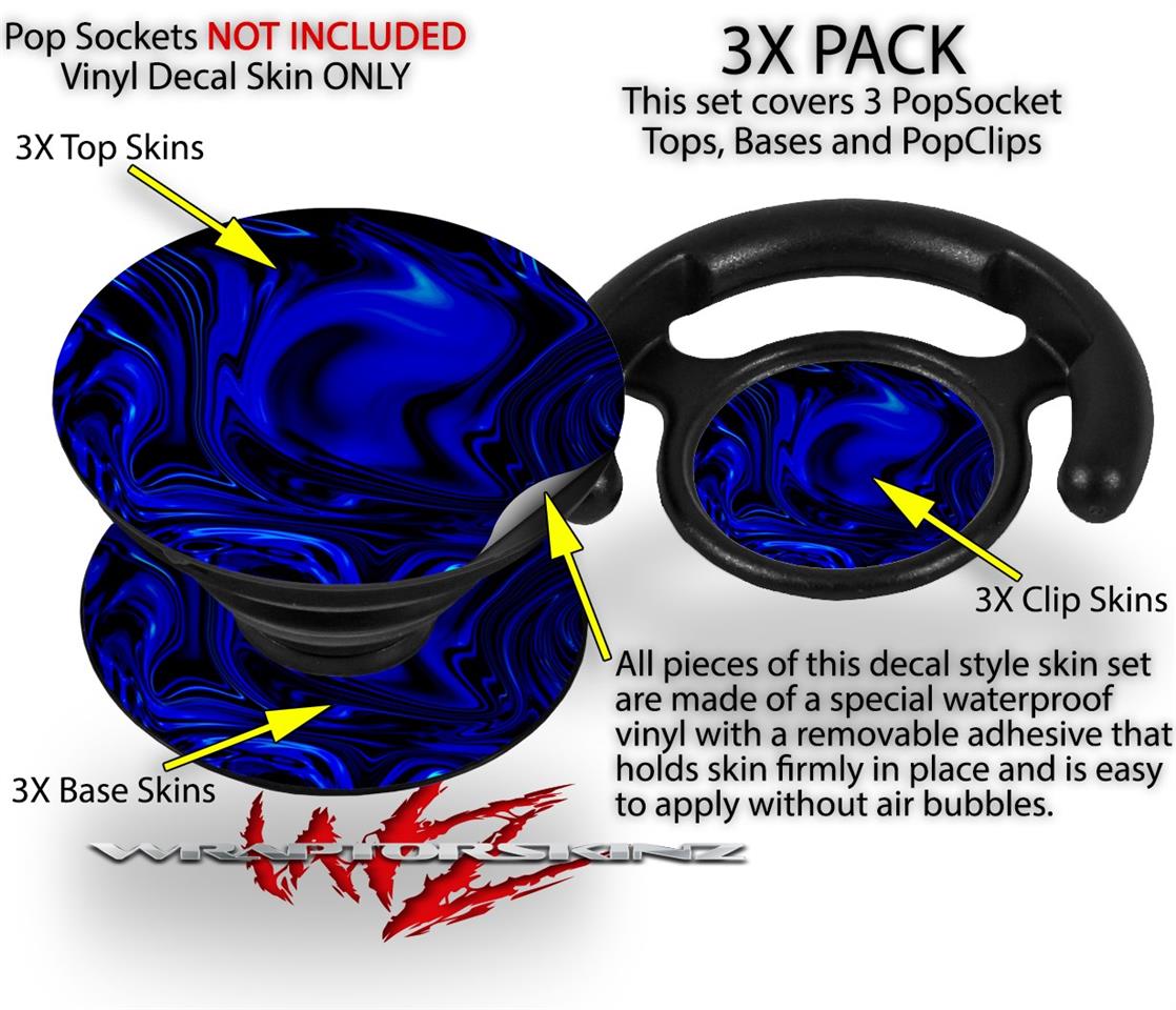 Decal Style Vinyl Skin Wrap 3 Pack compatible with PopSockets Liquid Metal Chrome Royal Blue (POPSOCKET NOT INCLUDED)