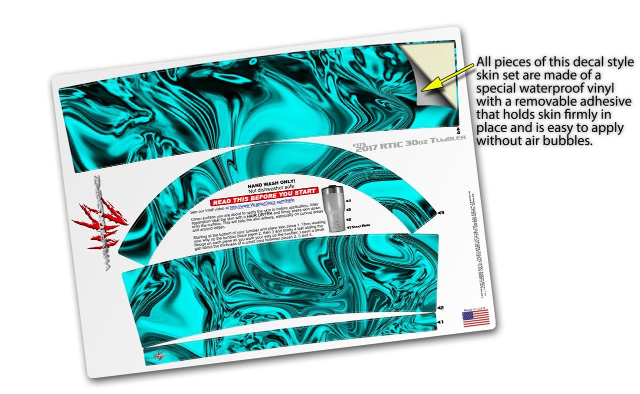 WraptorSkinz Skin Wrap compatible with 2017 and newer RTIC Tumblers 30oz Liquid Metal Chrome Neon Teal (TUMBLER NOT INCLUDED)