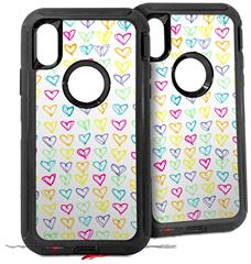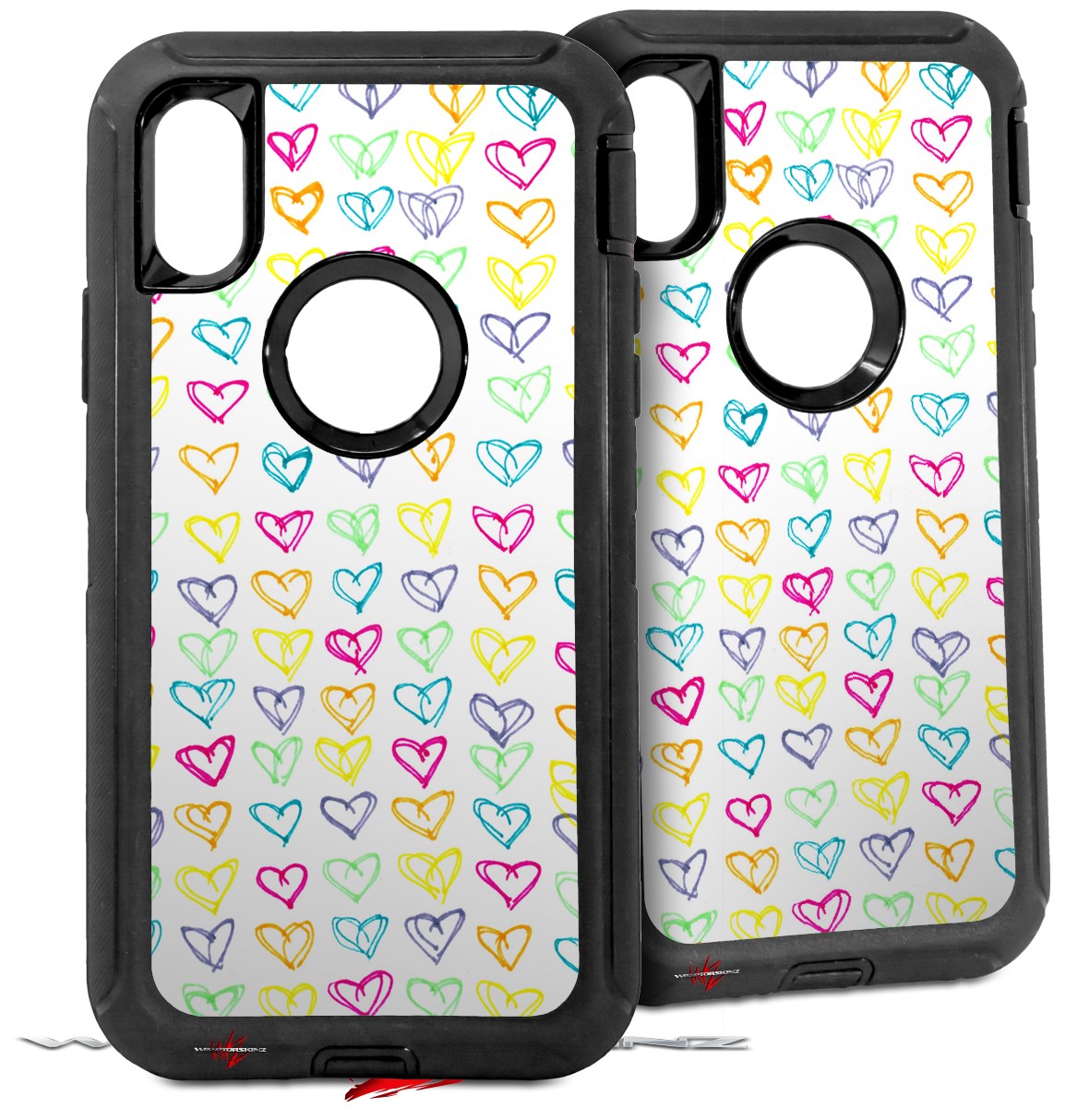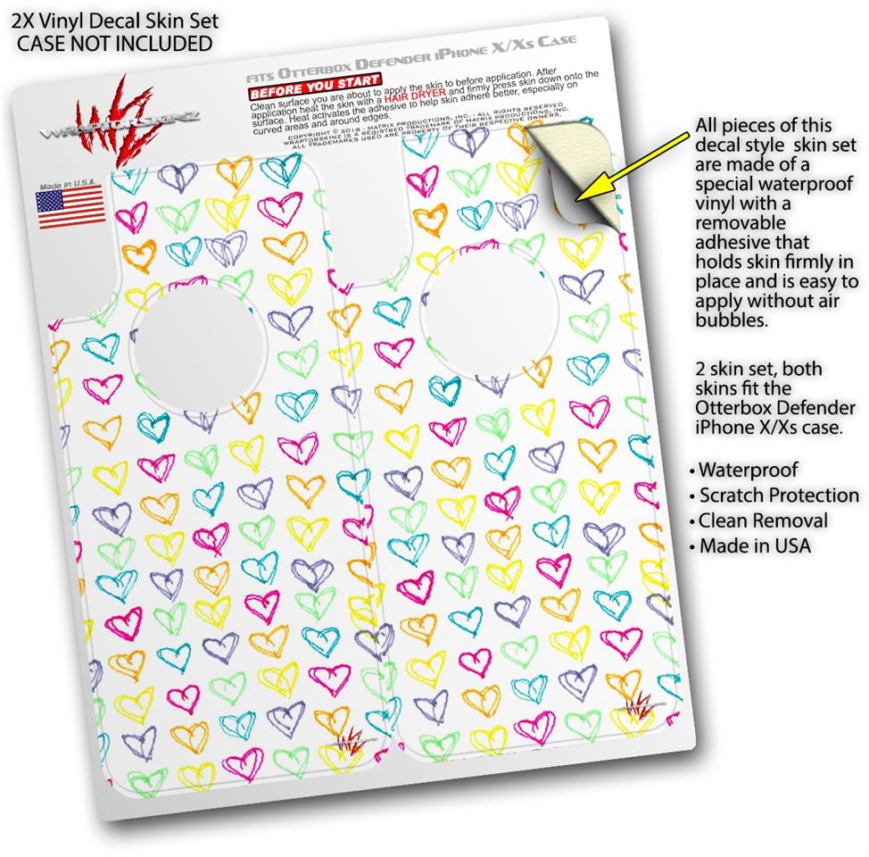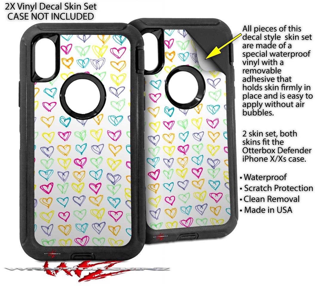 2x Decal style Skin Wrap Set compatible with Otterbox Defender iPhone X and Xs Case - Kearas Hearts White (CASE NOT INCLUDED)
