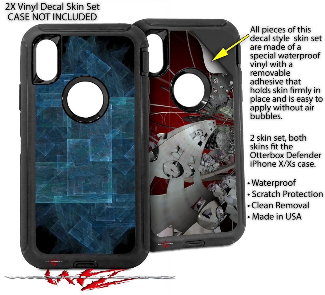 2x Decal style Skin Wrap Set compatible with Otterbox Defender iPhone X and Xs Case - Brittle (CASE NOT INCLUDED)
