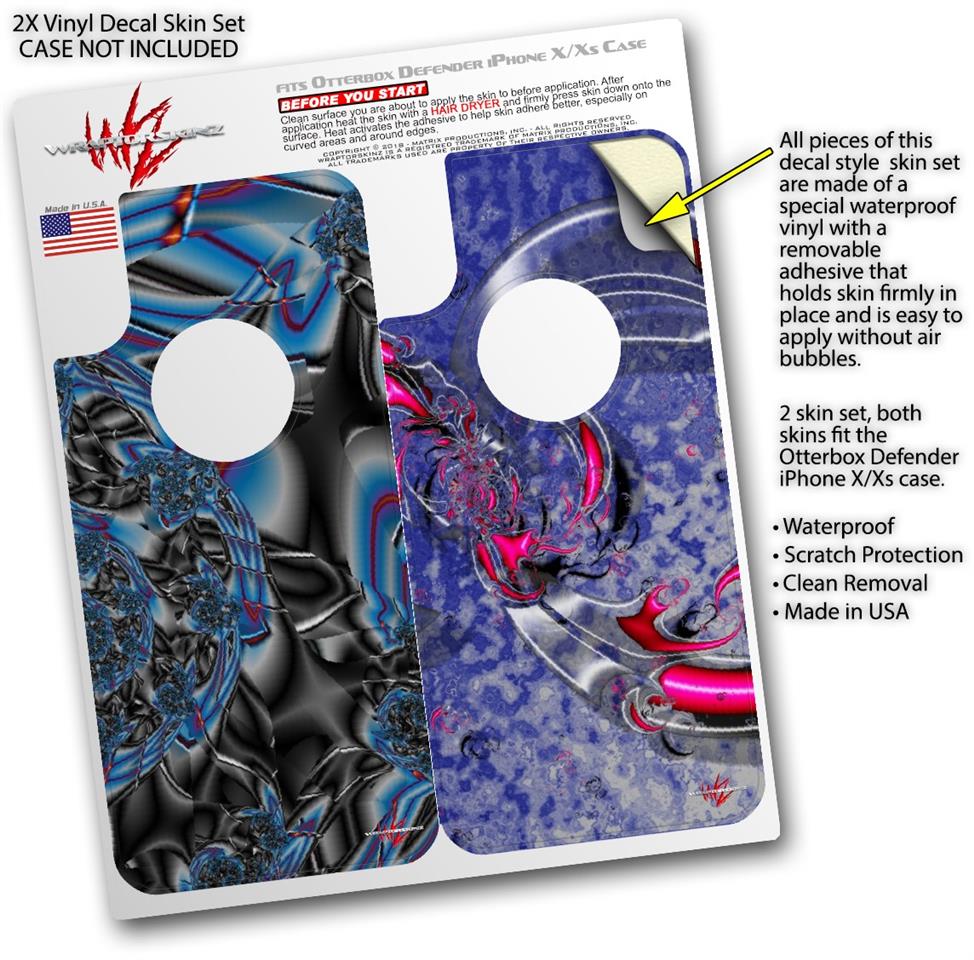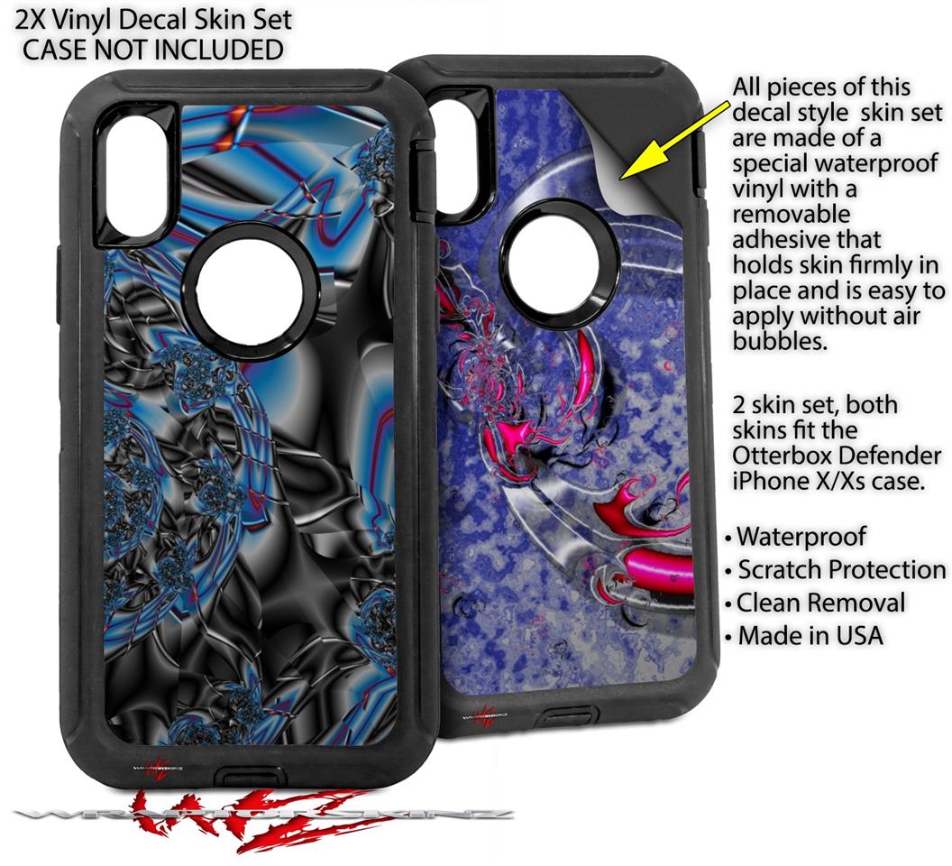 2x Decal style Skin Wrap Set compatible with Otterbox Defender iPhone X and Xs Case - Broken Plastic (CASE NOT INCLUDED)