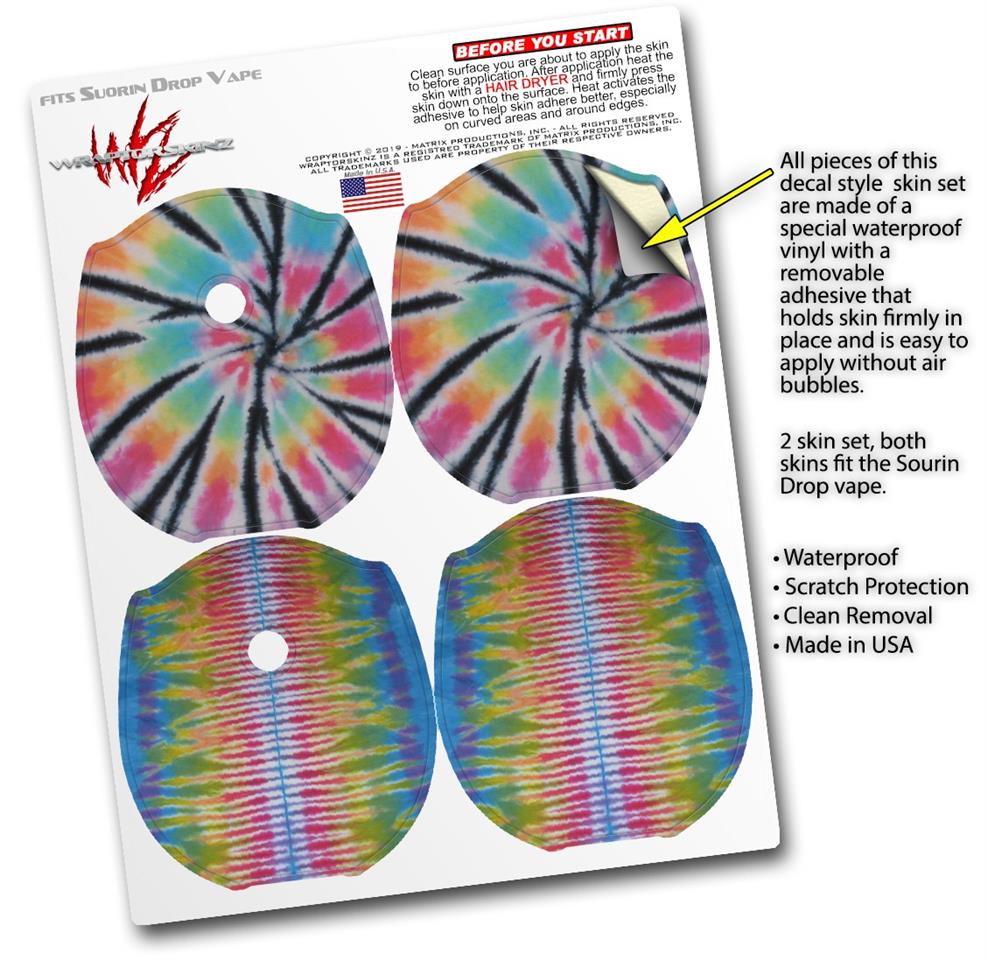 Skin Decal Wrap 2 Pack compatible with Suorin Drop Tie Dye Swirl 109 VAPE NOT INCLUDED