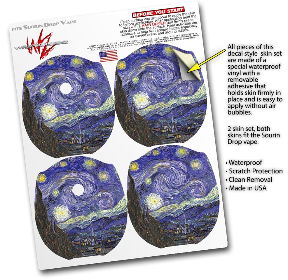 Skin Decal Wrap 2 Pack compatible with Suorin Drop Vincent Van Gogh Starry Night VAPE NOT INCLUDED