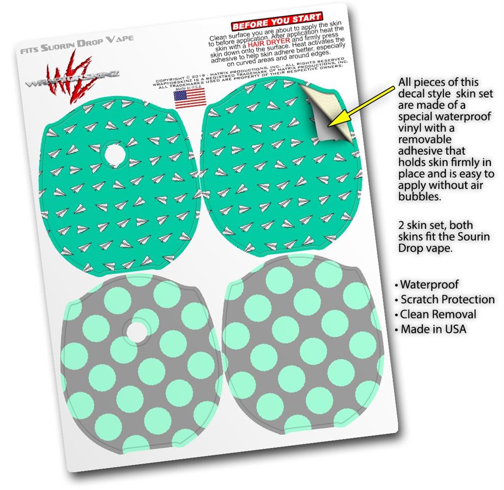 Skin Decal Wrap 2 Pack compatible with Suorin Drop Paper Planes Turquoise VAPE NOT INCLUDED
